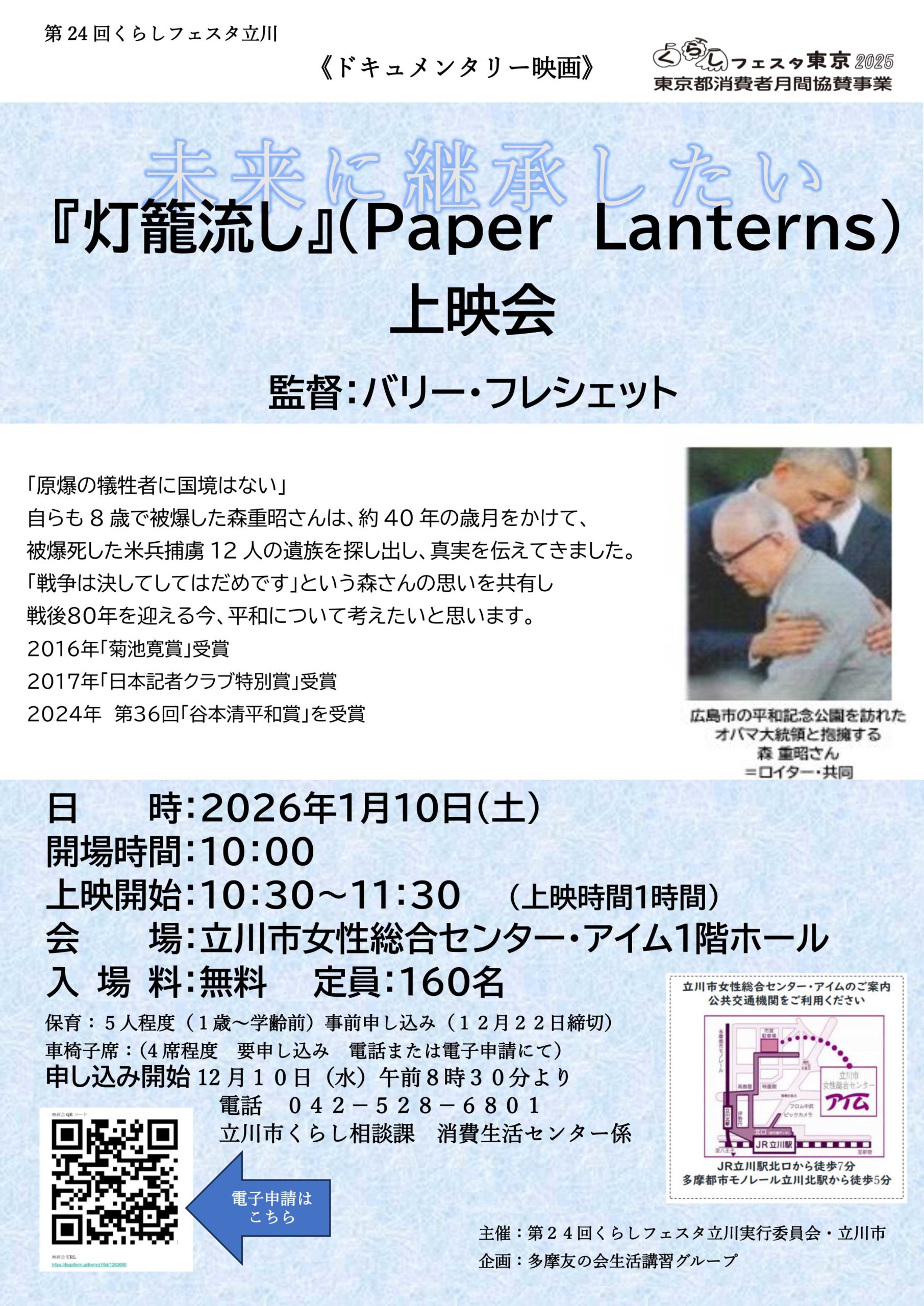 1月10日(土)10:30~11:30 ドキュメンタリー映画『灯籠流し』(Paper Lanterns)
